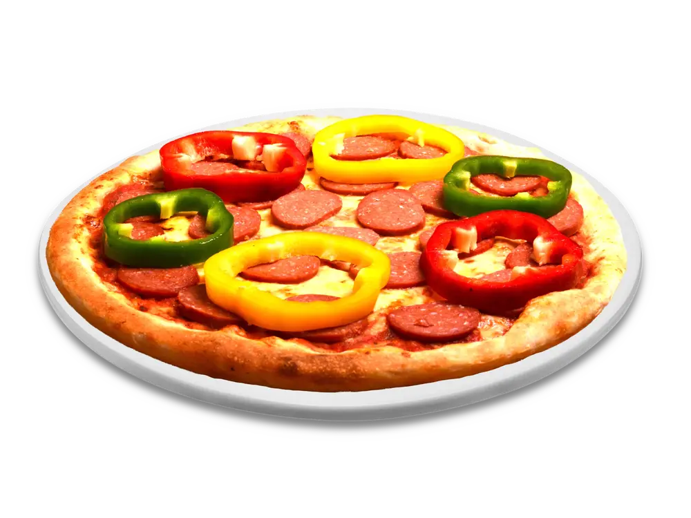 Frischer Teig, Tomatensauce, echter Käse, Sucuk (Knoblauchwurst), Paprika